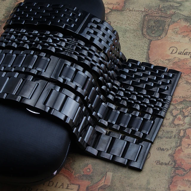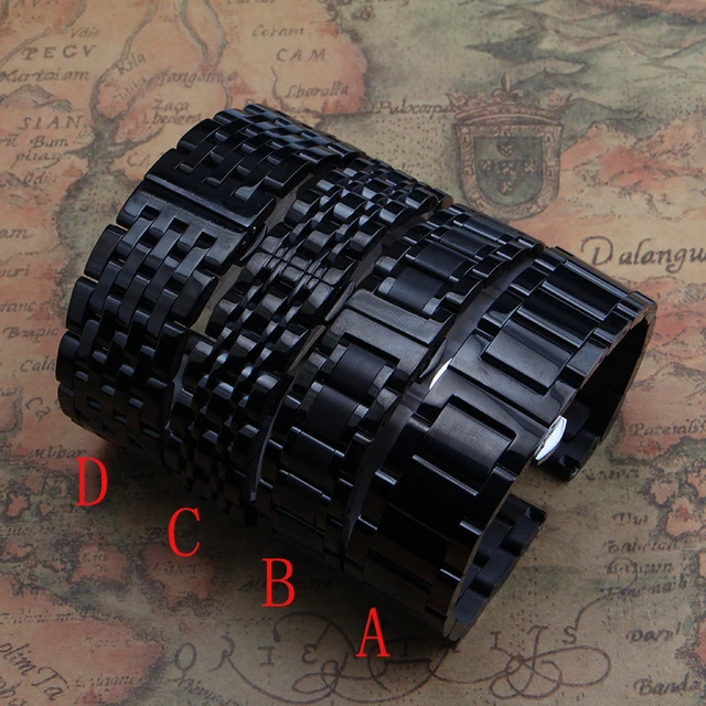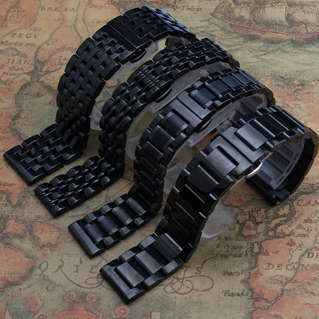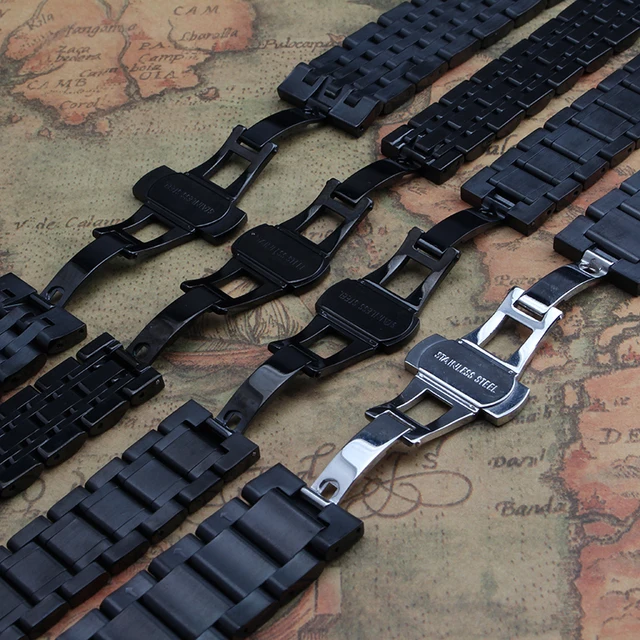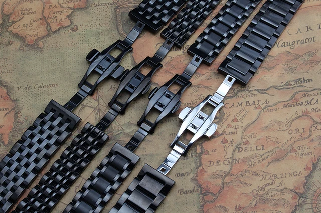 상품 내용 새로운 시계 밴드 여자 남자들 20mm 22mm 나비 버클 블랙 스테인레스 스틸 시계 밴드 팔찌 특수 금속 스트랩 직선 끝