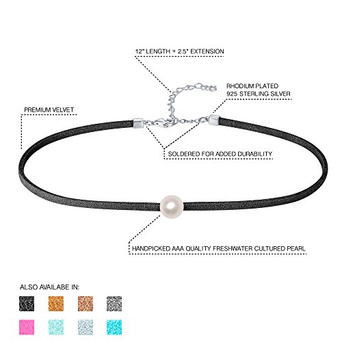 PEARL CHOKER NECKLACE - Handpicked pearl on premium velvet is 12" with a 2.5" extension to comfortably fit all neck sizes.