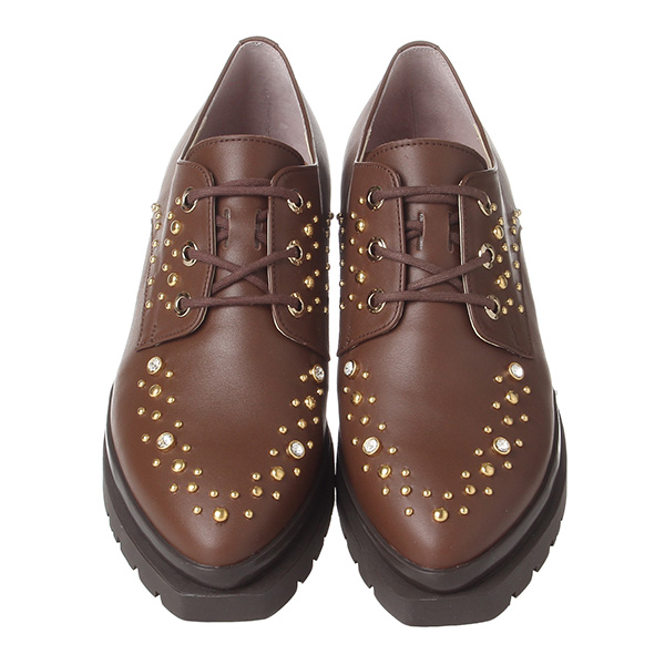 락시크한 감성의 스터드 옥스퍼드 스타일로 멀티징을 활용하여 토쉐입에 포인트를 준 아이템.