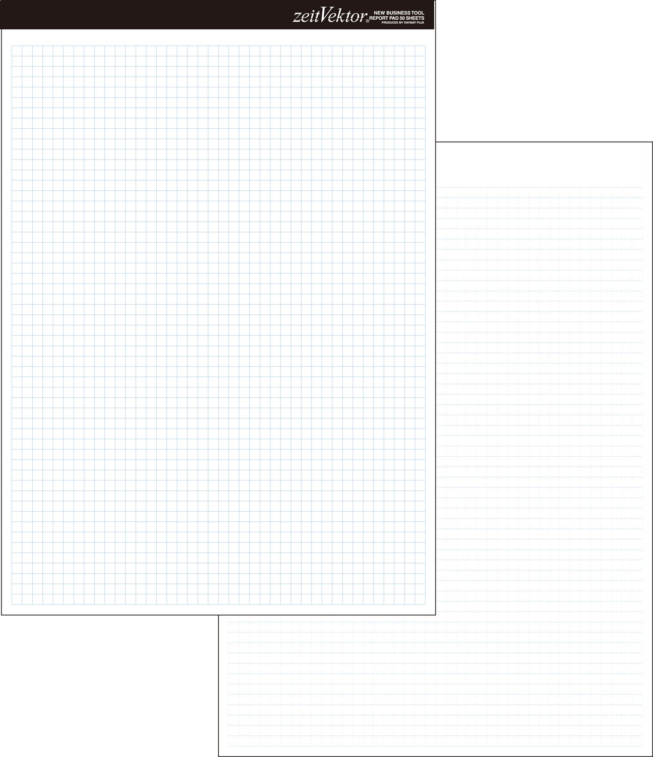 With perforated report paper 50 (5 mm grid on the front side, 5 mm dot grid on the back side)