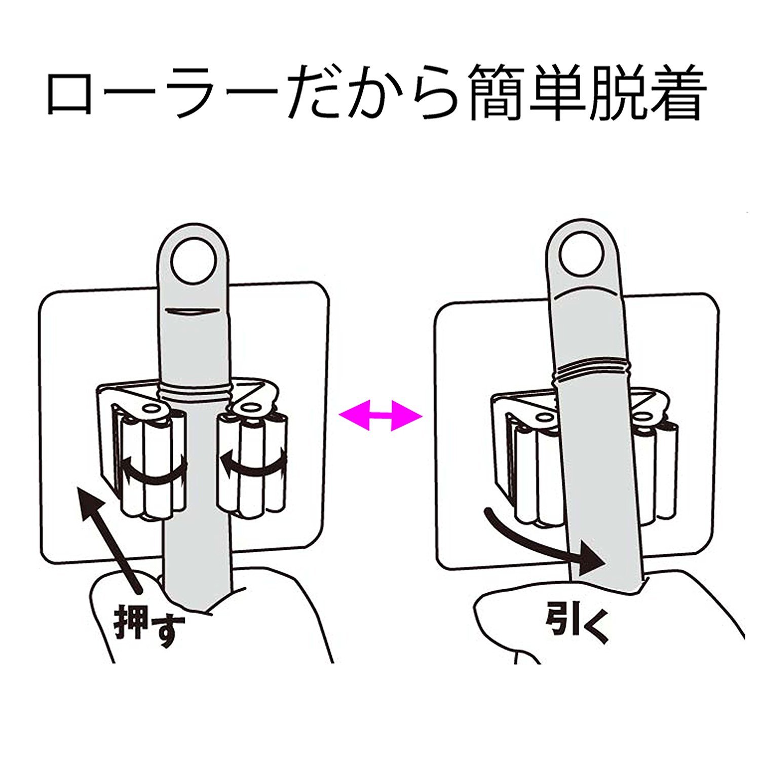 A roller hook that can be fixed by inserting a rod-like item from the front.