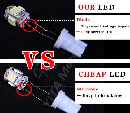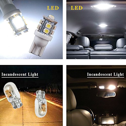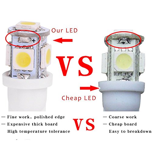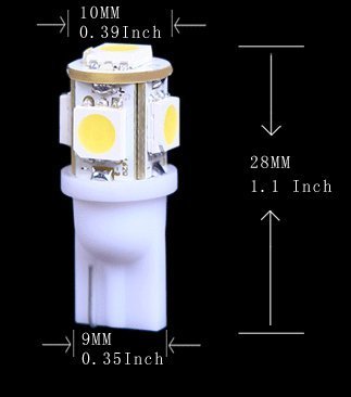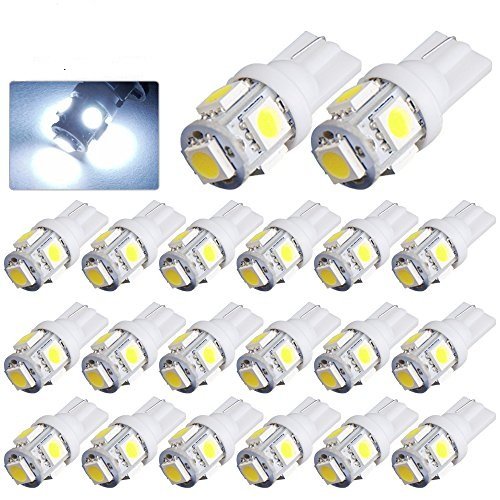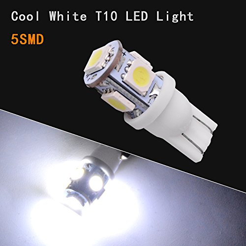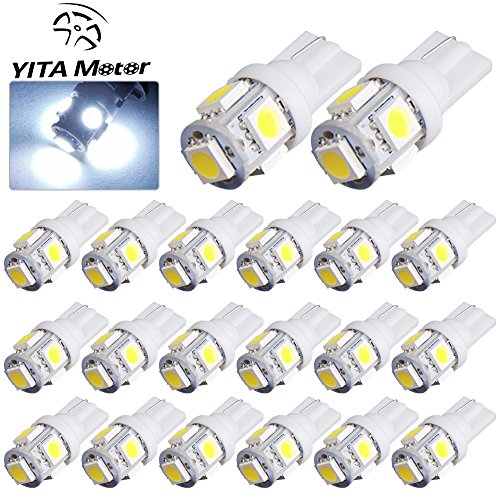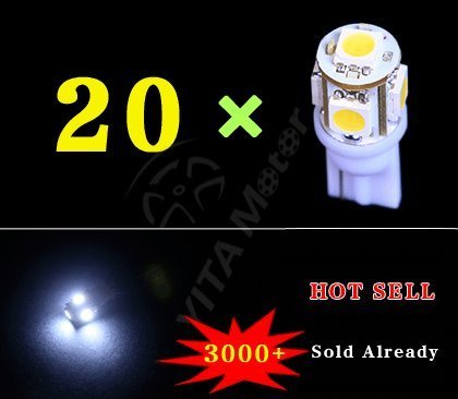 Studio : yitamotor Publisher : yitamotor Product Description 1.For 12 volts 2.Number of Bulbs: 20PCS 3.LED Color: Cool White 4.LED Type:T10 5050 high power Tri-Cell 5 SMD LED 5.Base Diameter: 9mm 6.Total Height: ~28mm 7.Weight:40g 8.Cross Reference: W5W 194 192 168 175 2825 579 147 152 158 159 161 184 193 259 280 285 447 464 555 558 585 655 656 657 1250 1251 1252 2450 2652 2921 921 906 579 9.Application: Common use for Interior (Map, Dome, Cargo, Courtesy) Light, License Plate Light, Parking Light, Turn Signal Light, Corner Light, Side Marker Light, Tail Light, and Backup Lights, Common use for Car, Truck, Motorcycle, Scooter, Trailer, RV, Boat, Marine, ect.. Solution: -European brand cars may have need T10 canbus bulbs to remove error messages. -Won't light up: Flip it 180 degrees(reverse the polarity). Move the metal pin clips closer so that they can mount the festoon tighter. (You don't have to do that if you think it might break the clips) -Flicker. Try slightly raise the LED bulbs metal pin and reinsert (improve connectivity) 0