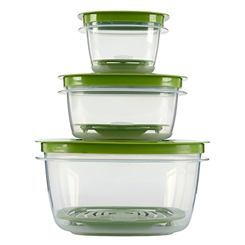 - Best square organizer, Large: 14 cup: 9.5"W x 5"H; 5 cup: 7"W x 3.5"H; 2 cup: 4.75"W x 2.5"H; (1) 12pc Rubbermaid Produce Saver Value Set Includes: (6) Containers [(2) 14-Cup, (2) 5-Cup, (2) 2-Cup] With Lids & Trays (2 Packs Of 6pc Sets), Model 1862230, Clear With Green Lids, New In Retail Packaging