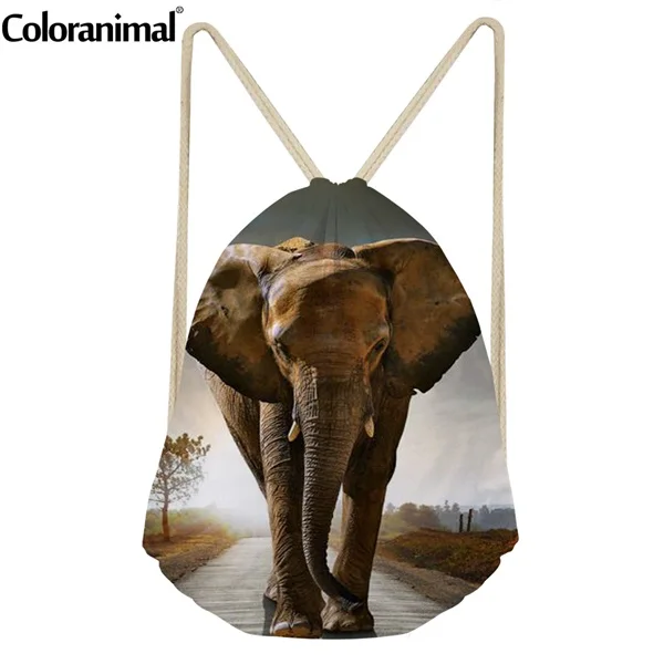 pattern:Elephant Bulldog Cat print drawstring bag