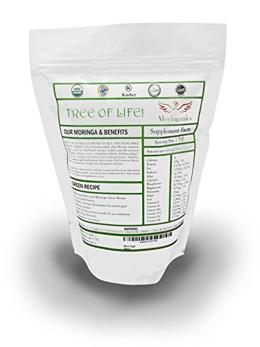 supports the immune system,Moringa by Moringanics Tree of Life, Certified USDA Organic Moringa Powder, Non-GMO, 100% Pure and Raw, 1lb,POWERFUL ANTIOXIDANT,POWERFULLY PACKED WITH NUTRIENTS - vitamins, trace minerals, and amino acids also contains iron, potassium, & calcium a powerful antioxidant ,Mental clarity,DETOXIFICATION,HEALTH & RADIANT SKIN, reduction of tiredness & fatigue, Lowers Blood Sugar Level Maintains Healthy Cholesterol Levels, superfoods,SATISFACTION GUARANTEED,health benefits