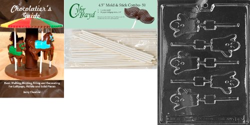 Cybrtrayd 'Small Ghost Lolly' Halloween Chocolate Candy Mold with 50 4.5-Inch Lollipop Sticks and Chocolatier's Guide