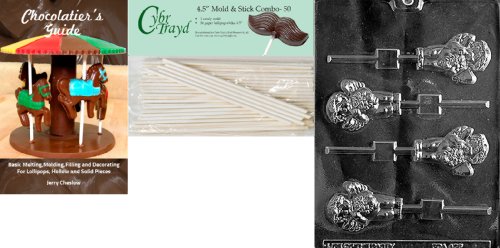 Cybrtrayd 'Cherub Lolly' Valentine Chocolate Candy Mold with 50 4.5-Inch Lollipop Sticks and Chocolatier's Guide