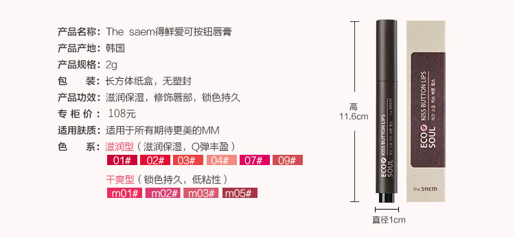 | 功效: | 修饰唇部 ,保湿滋润,持久上色 | |