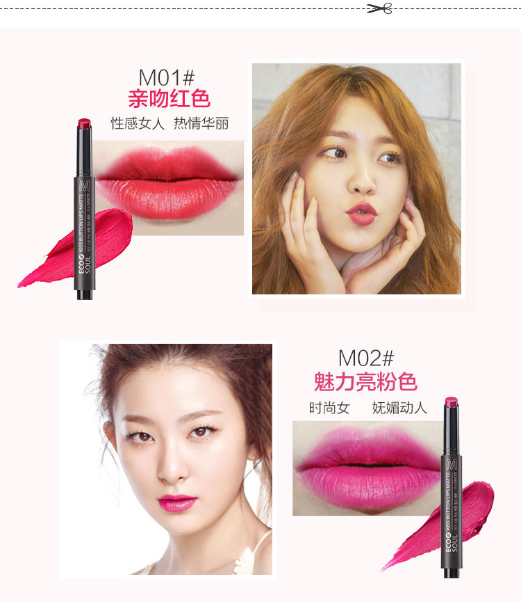 | 色号: | 爱可按钮唇膏色号:01 热吻红色/02 完美珊瑚红色/03 笑容橙色/04 心跳珊瑚粉色/07 清爽蓝莓紫色/09 咖啡棕色 爱可按钮干爽唇膏色号:01亲吻红色# /02 魅力亮粉色#/03 求婚桃粉色#/05 红围巾色# | |