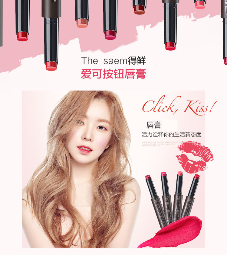 得鲜爱可按钮唇膏笔哑光干爽