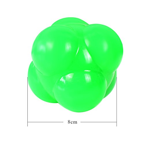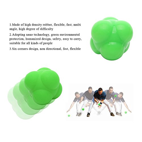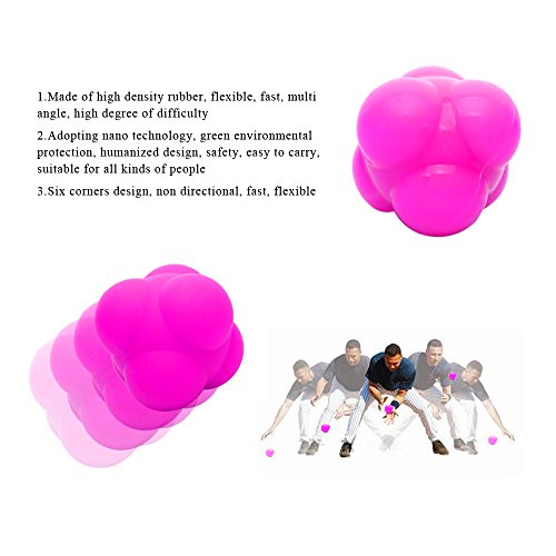 -. Feature : Six-knob design with rubber construction creates unpredictable bounces. / Made of solid, high density and natural rubber or silicon; Non-synthetic and Eco-friendly / For use on all hard surfaces and walls,great training tool for all sports, including baseball / Greatly improves hand-eye coordination, motor-sensory skills, reflexes and peripheral vision / Great preventive against slowing reflexes and agility; Excellent sport and fitness trainer