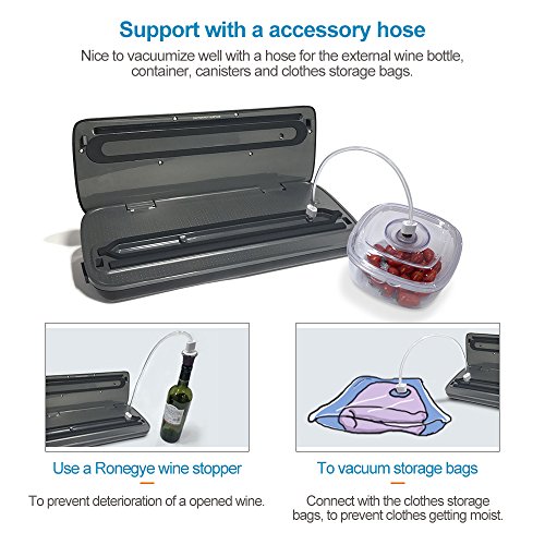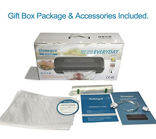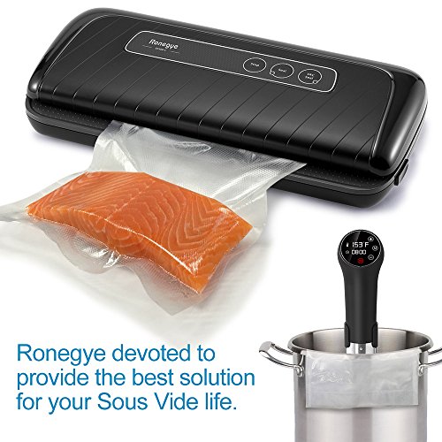 Ronegye Vacuum Sealer Machine Vacuum Sealing System Sous Vide Cooking Accessory with Starter Kit Fits Up to 12" width Gallon Seal Bags and Rolls for Foods Savers, Black