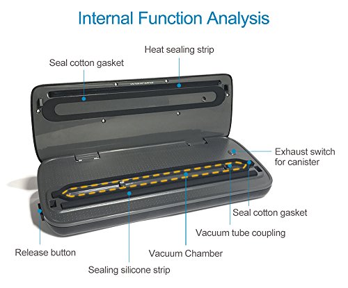 Fits up to 12'' width with any brand gallon vacuum seal bags and rolls. Sealing Time: 6 ~ 10 Seconds. Compact size and lightweight design.