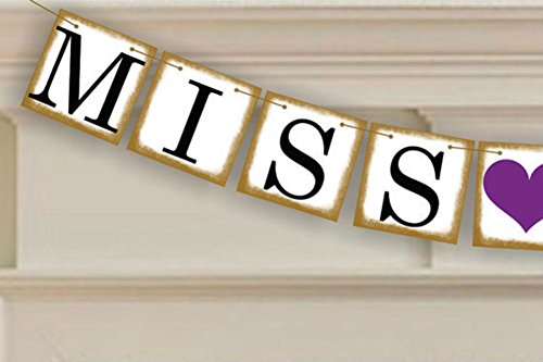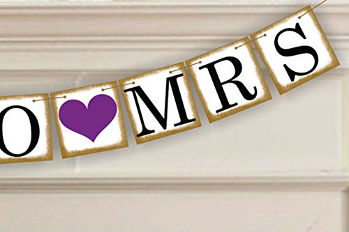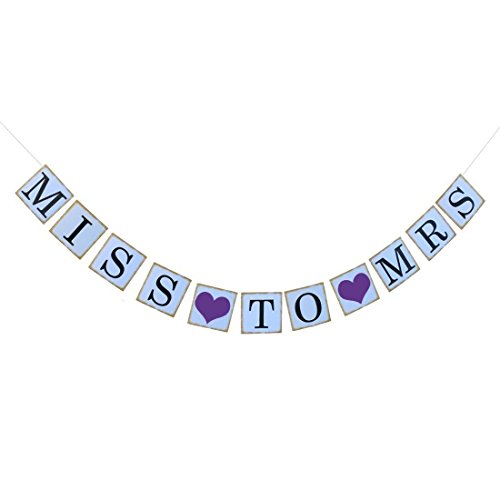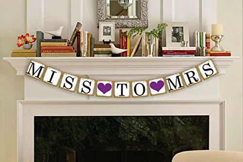 Akak Store MISS TO MRS Vintage Wedding Bunting Banner,Bridal Shower and Bachelorette Party Decorations and Photo Props with FREE 8ft Rope(Purple Heart)