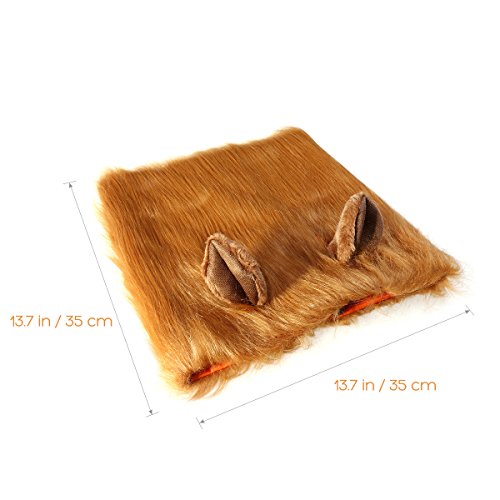 -. Feature : BRING OUT YOUR PET'S INNER LION! Make your dog into a real King Of The Jungle with this lion disguise. Everyone will get a laugh out of your pup's new look, and your dog will love the attention. / ONE SIZE FITS MOST. The combination of a buckle clasp and an expandable elastic band means this wig will fit any medium to large dog. / COMFORTABLE AND FUN. A soft inner lining, light weight, gentle elastic, and holes for your dog's ears make this mane comfortable to wear. / QUALITY MATERIALS FOR A GREAT LOOK. The faux hair is lustrous and flowing, and is the perfect orange-brown color of a lion's mane. The attached lion ears complete the effect. / NO-RISK PURCHASE! UNCONDITIONAL MONEY-BACK GUARANTEE. If you're unsatisfied with this item for any reason, we'll immediately refund your purchase price.