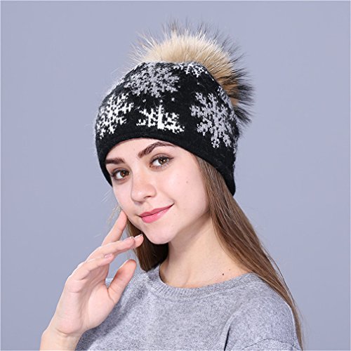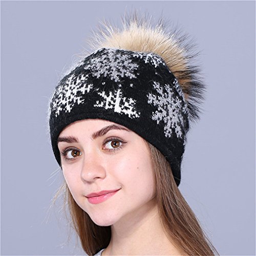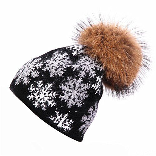 (Sariffy)/Accessories/Cold Weather Accessories/DIRECT FROM USA/mink knitted hat natural pom poms wool rabbit fur hat fashion snow Skullies winter hat for wome...