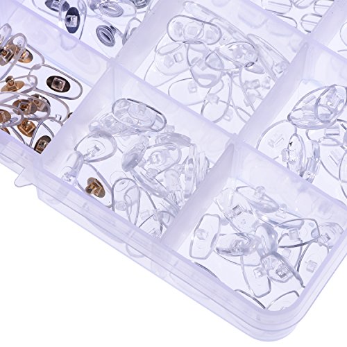 Quantity: 150 pairs of eyeglass nose pads with a 15 grids clear storage box, nose pads are in 15 styles, each style for 10 pairs (20 pieces), convenient to store and carry