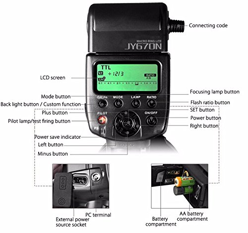 VILTROX JY-670C Close-up E-TTL ring flash ,Macro Ring Light TTL Ring Flash Light with AF Assist Lamp for Canon EOS 5d 6D 7D T6i T7i 77D ,for dental medical work