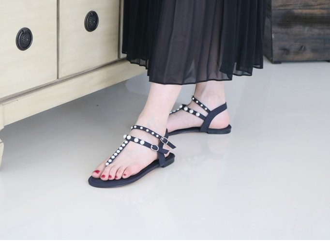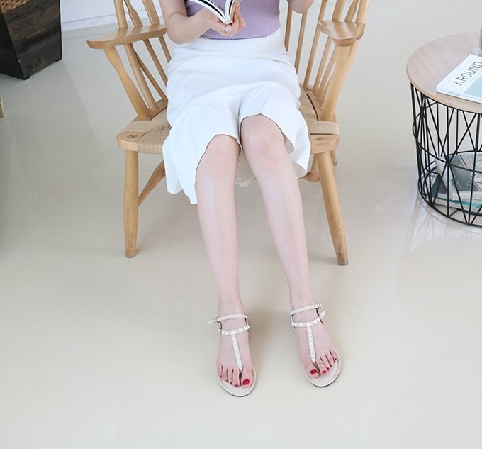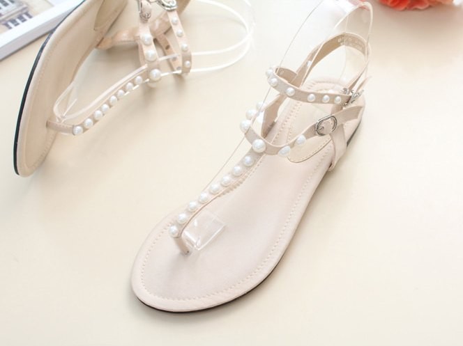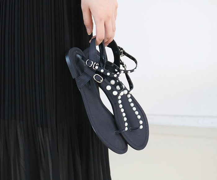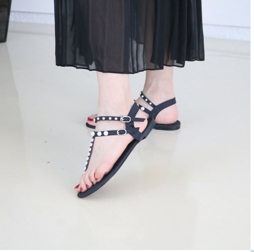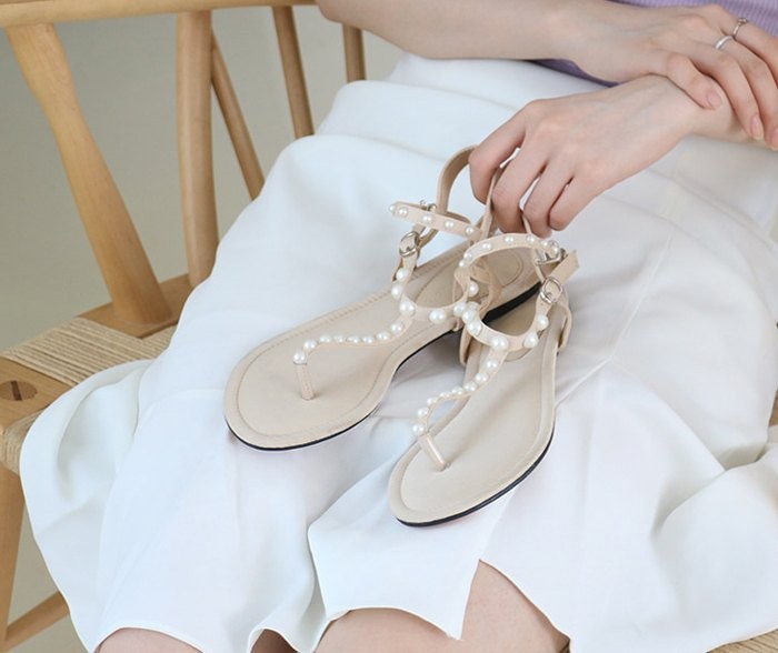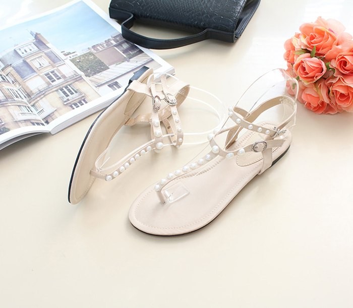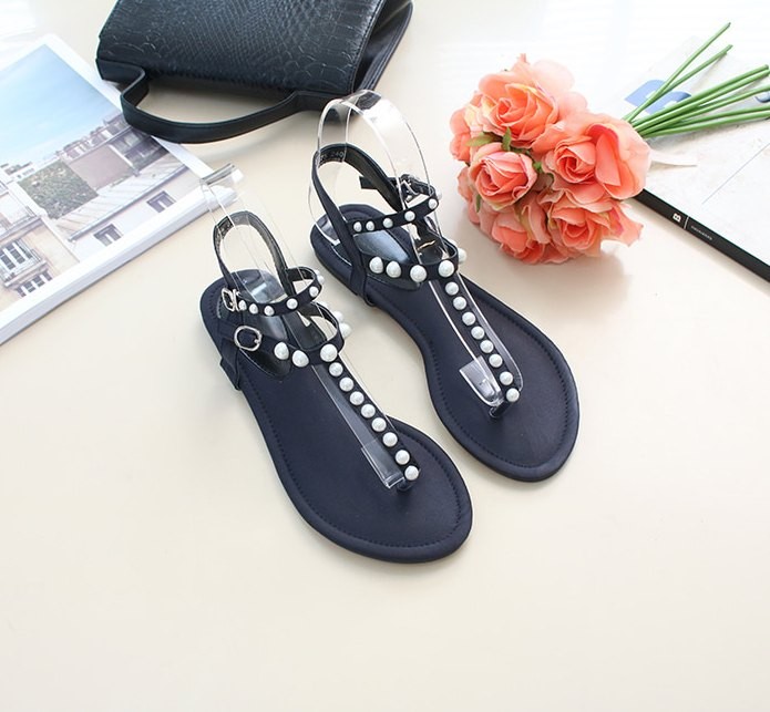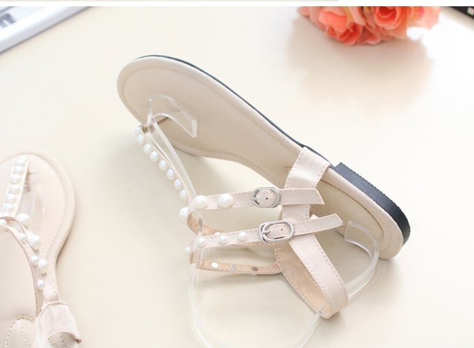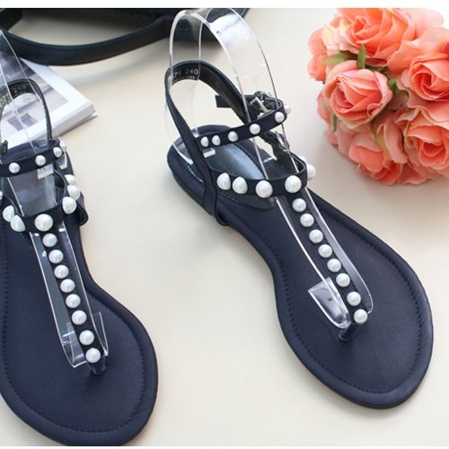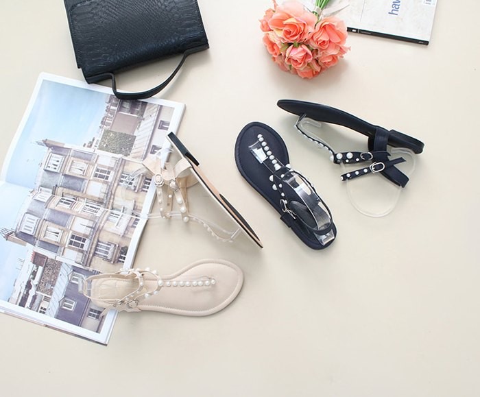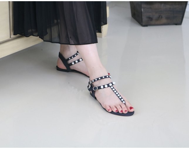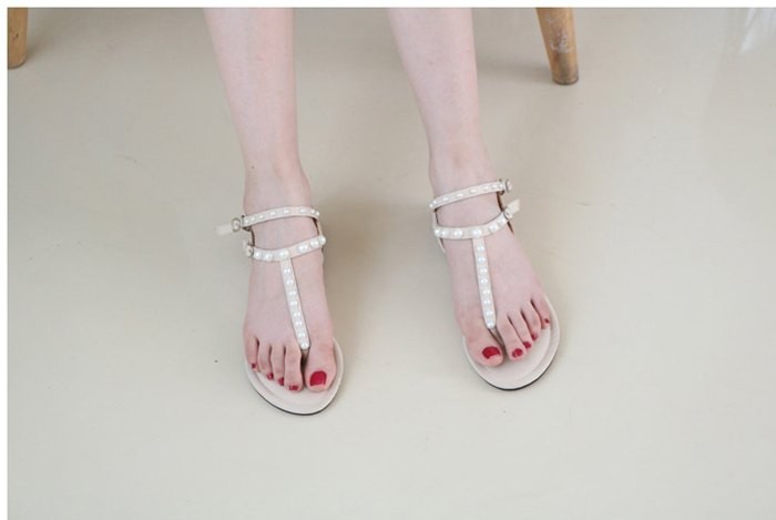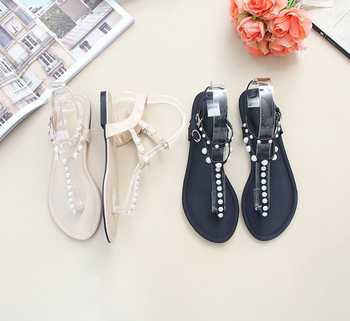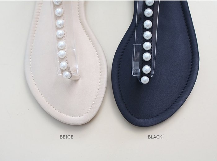 商品名:サンダル レディース ペタンコ トングサンダル パールビジュー フラットヒール 2018 夏 ファッション 靴 婦人靴