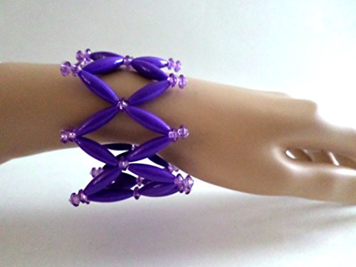 -. Title : 8" Beaded Slip-on Cuff Bracelet, Purple - Handmade in USA By Gisele Gomez - Ready-to-Ship