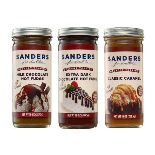 -. Binding : Misc. -. Brand : Sanders® -. EAN : 0035903401647 -. Feature : Sanders Assortment Milk Chocolate Hot Fudge, Classic Caramel and Extra Dark Chocolate Hot Fudge Dessert Topping 10 Oz (Pack of 3) / The original, award winning "hot fudge" is a real crowd-pleaser. / Creamy caramel with a hint of butterscotch. Perfect on Apple Pie or as an Apple dip. / Extra Dark Chocolate Hot Fudge ~ Rich, dark fudge with a strong cocoa flavor. / Certified Gluten Free and All Natural -. IsAdultProduct : 0 -. Label : Sanders -. Manufacturer : Sanders -. PackageQuantity : 3 -. ProductGroup : Grocery -. ProductTypeName : GROCERY -. Publisher : Sanders -. Studio : Sanders -. Title : Sanders Assortment Milk Chocolate Hot Fudge, Classic Caramel and Extra Dark Chocolate Hot Fudge Dessert Topping 10 Oz (Pack of 3) -. UPC : 035903401647