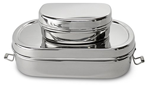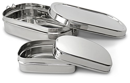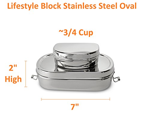 Lifestyle Block Stainless Steel Oval Lunch Box with Inner Snack Box