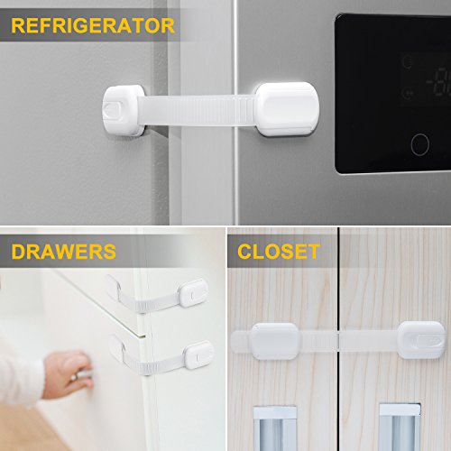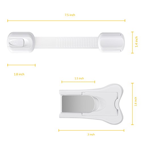 Durable Material: ABS locks with strong 3M adhesive tape and latch system, safe and nontoxic for humans and animals, easy to unlock for adults and hard to crack by babies. Adjustable TPE Strap: The strap can be adjusted into a perfect length (from 3 to 7 inches) to fit different size of furniture. (Note: Once the strap gets locked in place, it can¡?t be removed again. So please make sure the strap length before locking. )