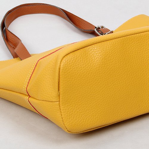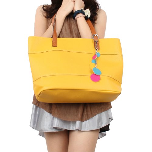 Retro Fashion Women's Tote PU Leather Shoulder Bag Handbag Shopper (Candy Color/Yellow)