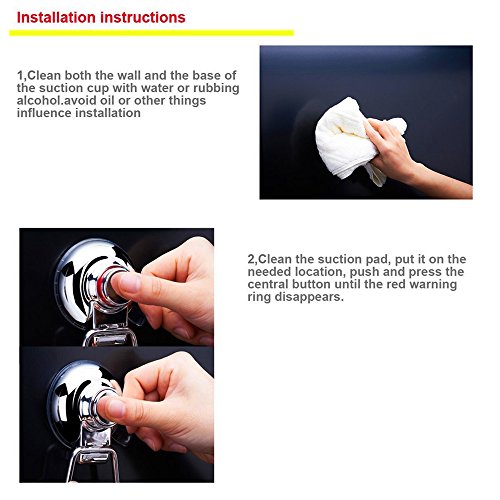 - EASY INSTALLATION: A simple press could easily install this product to a smooth surface where appointed.No Tools Needed, No Drilling,No Need gluing.Neither leave any mark on the wall.One suction could support weight of 7kg maximum.