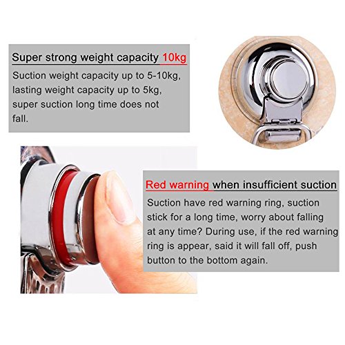 - DURABLE RELIABLE QUALITY: Made of sturdy chrome and with a deluxe 304 stainless finish, suction cup hooks make an attractive, durable accessory with guaranteed longevity for all your home or workplace rooms! The powerful suction mechanism offers solid attachment on any smooth wall and can be easily removed without leaving marks on the glossy surface.