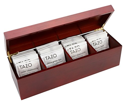-. Feature : 13.8" wide, by 4" deep, by 4.3" tall / Elegant tea box is finished with a dark rosewood stain / Tazo Tea sampler box includes 40 Tazo Tea Bags in 10 flavors (Capable of holding up to 64 tea bags) / Tazo Tea is know for its high quality and rich blending / 100% Satisfaction Guaranteed - If you HAVE any PROBLEMS contact us and we will take CARE of YOU!