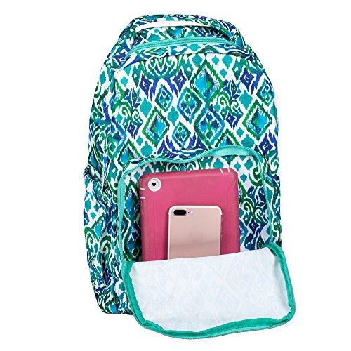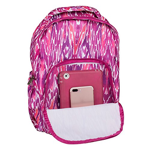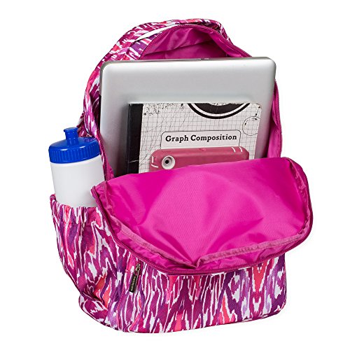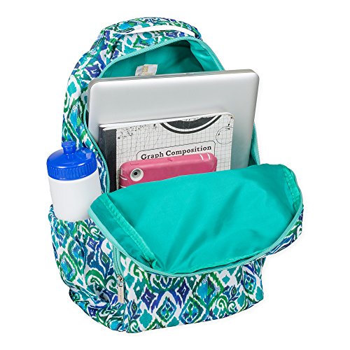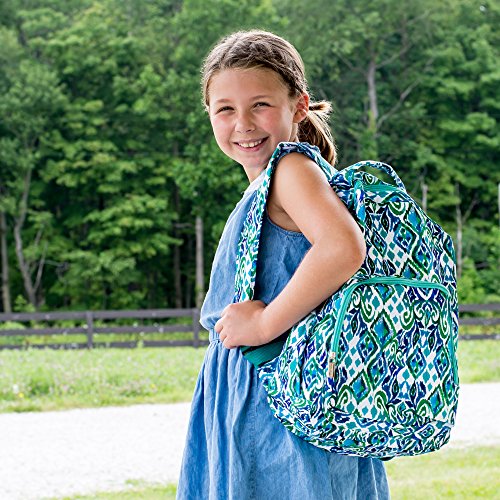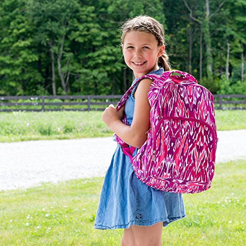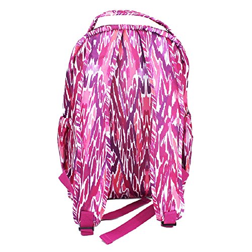 -. Brand : Mary Square -. Department : girls -. Feature : Measures approximately 10 x 5.5 x 18 inches / Zippered front pocket and elastic pockets on each side for holding water bottles and other school accessories / Made of easy-to-clean 600D polyester / Cushioned, adjustable back straps and top handle for carrying comfort / Made with easy to wipe clean, canvas-like material -. ProductGroup : Apparel -. ProductTypeName : LAGE -. Size : 16.5 x 11.0 x 4.0 -. Title : Mary Square Patterned 10 x 18 Inch Polyester Zippered Backpack