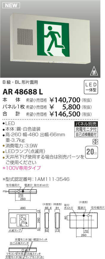 ●天井吊下げ使用する場合は別売パーツをご使用ください※100V専用タイプ※型式認定番号:1AM111-3546