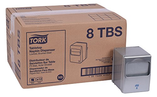 Tork 8TBS Lowfold Tabletop Napkin Dispenser, 5.5" Height x 4.0" Width x 4.75" Depth, Brushed Steel (Case of 12 Dispensers)
