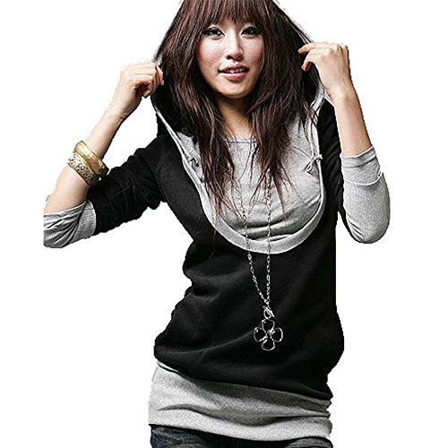-. Title : BALDR(バルドル) 重ね着 風 フード 付き 長袖 シャツ レイヤード ロング トップス カットソー