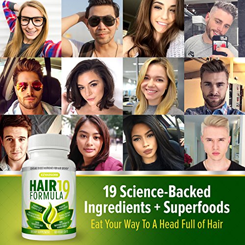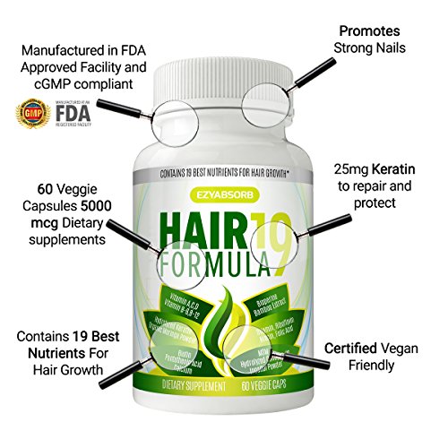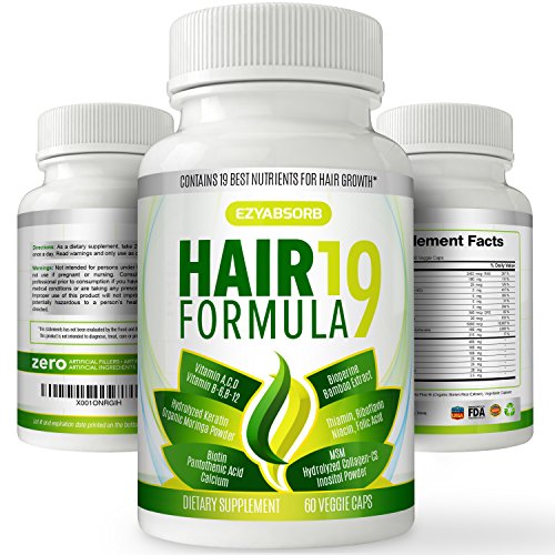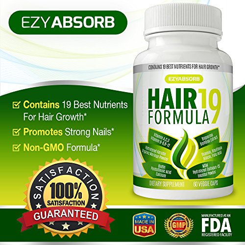 NO ARTIFICIAL EXCIPIENTS (SYNTHETICS): Our Hair Formula 19 supplement is free of magnesium stearate, stearic acid, dicalcium phosphate, gluten and silicon dioxide. EzyAbsorb Hair Formula 19 is a great choice for people who want a truly natural, Kosher and organic supplement at an affordable price for men and women.