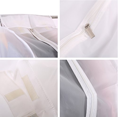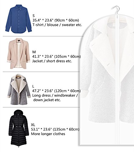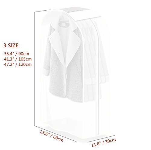 -. Feature : MATERIAL - High grade monolayer 8.5 silk PEVA, durable, reusable and easy to clean. / PRACTICAL - Big capacity and good care for clothes, protect suits from dirt, dust, damp and bacteria. / PERFECT GARMENT COVER FOR ALL YOUR NEEDS - Four types and three colors to choose for your dresses, suits, coats, shirts, jackets, trousers, uniforms and etc. / CONVENIENT for storage and looking for the clothes what you want. A good helper for sorting clothes, keep your bedroom tidy and clean. / EASY TO CARRY - There is no frame in the dress bag, which makes it easy to fold and take it along while traveling.