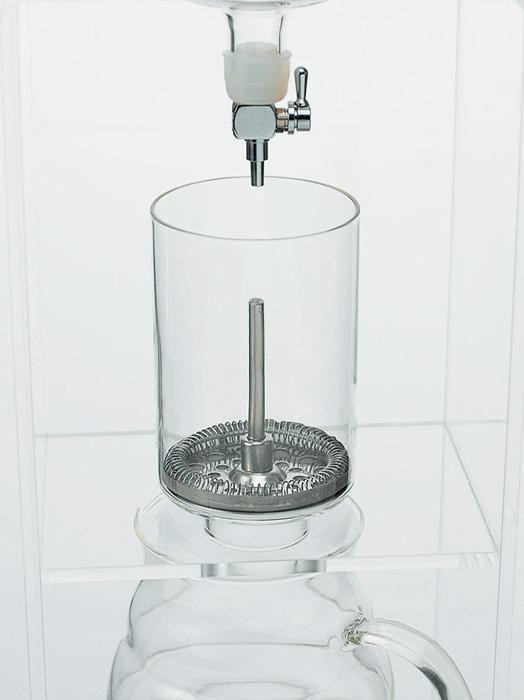 ポタポタと水を落として、じっくり珈琲の旨さを抽出。インテリア性を重視したシンプルなデザイン。金属コックで滴下調節します。 |