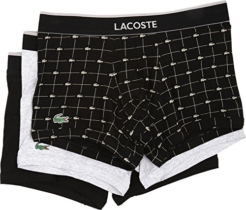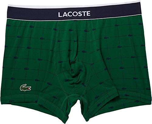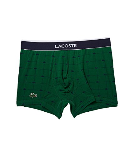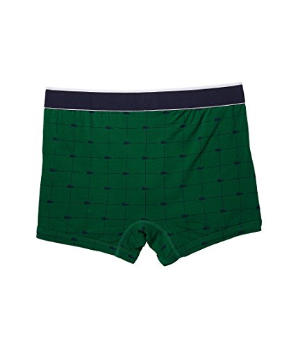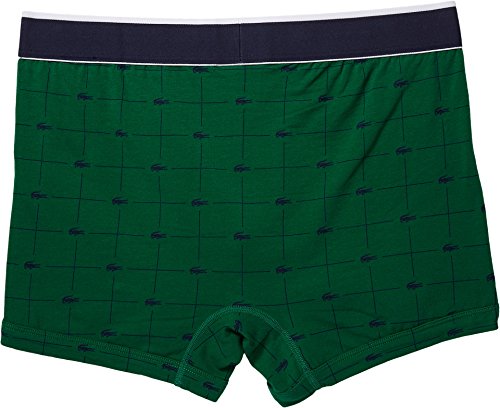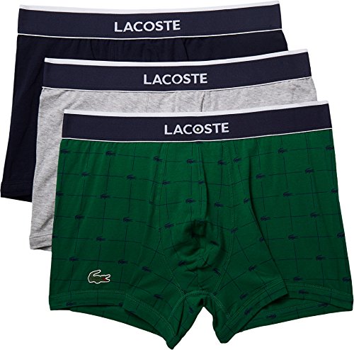 Lacoste Men's 3 Pack Signature Print Cotton Stretch Trunk, Nvy/Grn Crc/Gry, X-LARGE