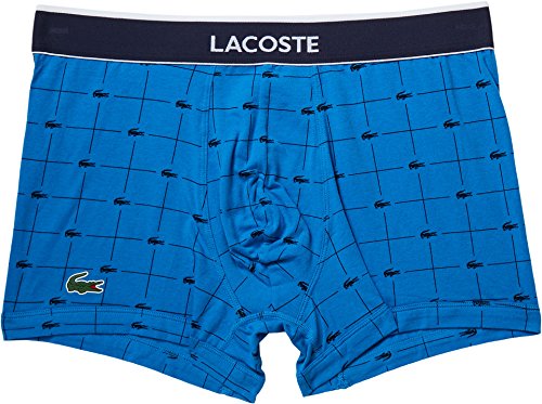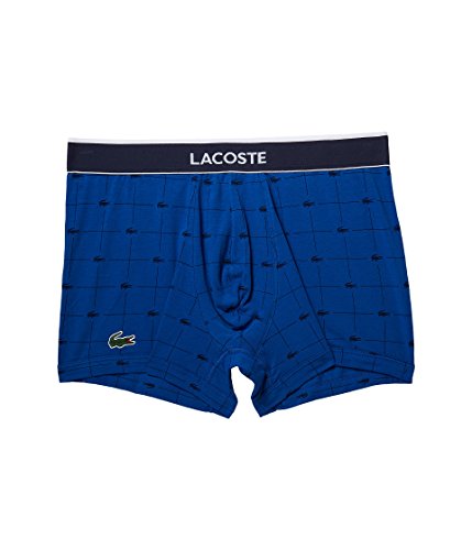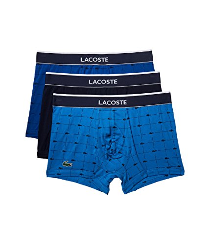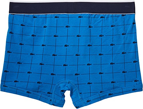 Lacoste Men's Colours 3-Pack Signature Print Cotton Stretch Trunk Olympus Blue/Navy/Brillant X-Small