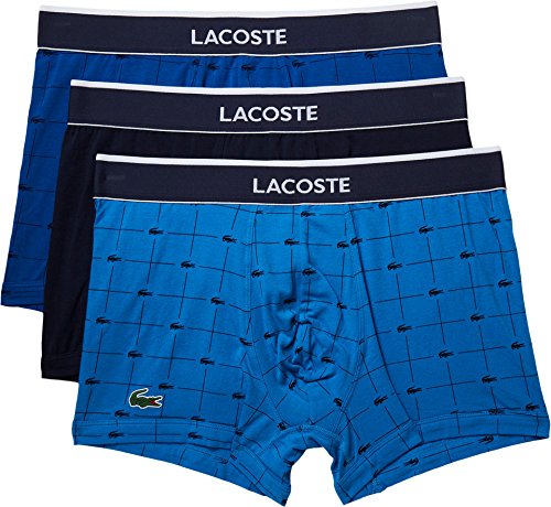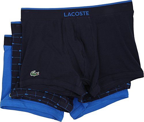 Lacoste Men's 3 Pack Signature Print Cotton Stretch Trunk, Olyblu/Nvy/Bril, MEDIUM