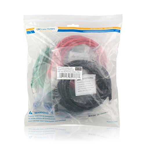Cable Matters 5-Color Combo, Cat6 Snagless Ethernet Patch Cable in Black, Blue, White, Red, and Green 10 Feet