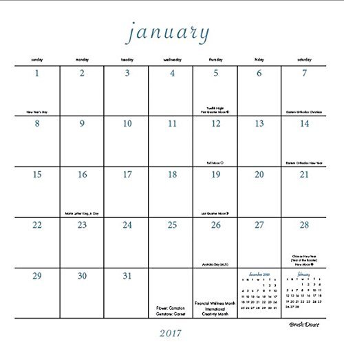 -. Feature : 2017 Calendar featuring beautiful images for every month of the year. / Includes Holidays and Observances. / Keep your appointments and Birthdays organized in one place! / Perfect for office spaces, bedrooms, classrooms and more! / Makes a great gift for friends and family!