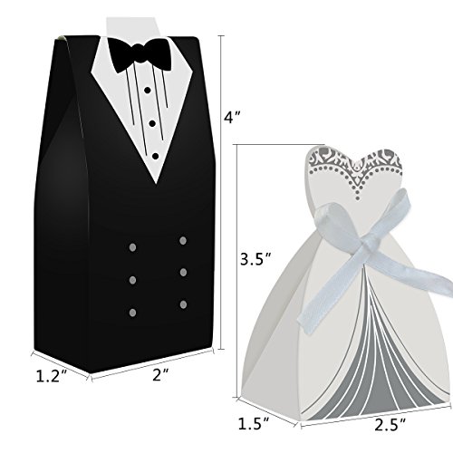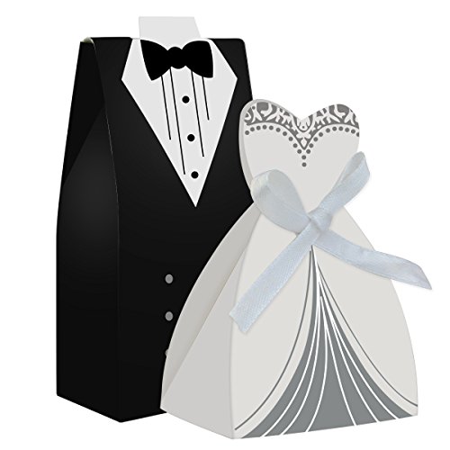 cnomg 100pcs Party Wedding Favor Dress & Tuxedo Bride and Wholesale Candy Favor Box,Creative Dress Candy Chocolate Gift Box Bonbonniere for Gift Wedding Party Birthday Bridal Shower Decoration