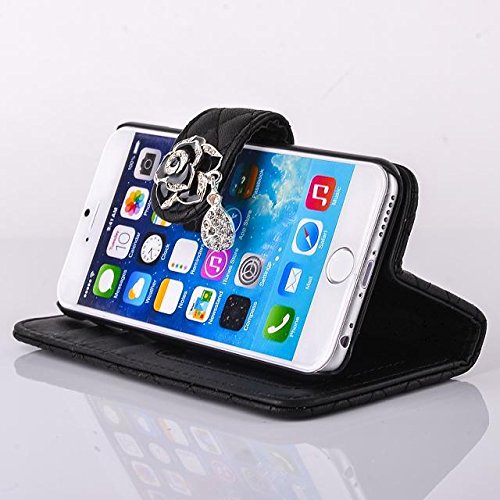 iPhone 6 Case, City View(TM) [Kickstand Feature] iPhone 6 (4.7) Case Wallet [Wallet S] [BLACK] Luxury Crystal Camellias Button With Diamond PU Leather Magnet Wallet Case with STAND Flip Cover and Card Slots + Screen Protector + Stylus for iPhone 6 (4