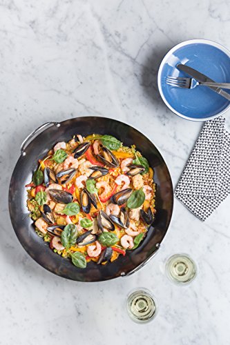 Made from high quality carbon steel, the Typhoon Living Carbon Steel Non Stick Paella Pan simpifies your day to day cooking endeavors. Its specially developed non stick finish limits the use of butter and oil and cuts cleanup time in half. Sturdy enough for a wide range of tasks, the Paella Pan promotes even heating and features a flat, shallow base that remains lightweight and easy to handle. Great for cooking Spanish paella, sauteing vegetables and more. Measuring 15-1/2-inches in diameter by 4-3/4-inches high, the product is safe for use in ovens up to 356 degrees F. For cleaning care, handwash only. Imported.