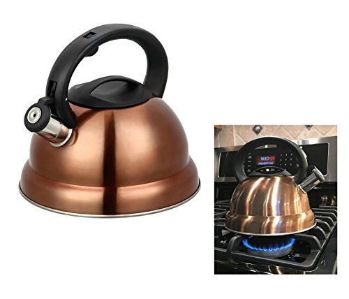 3 Quart Whistling Tea Kettle Modern Stainless Steel Whistling Tea Pot for Stovetop with Cool Grip Ergonomic Handle Brush Copper Finish
