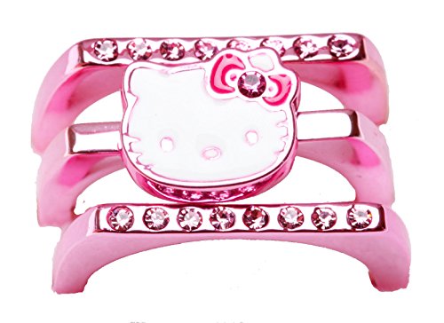 Fall In Love With Hello Kitty® Again! Introducing a fresh new twist on the world's beloved icon celebrated in a fun, fashionable jewelry collection. The whimsical collection of bracelets, earrings, rings, and pendants are stylish, sweet and must-haves for all ages. Show off this gorgeous Hello Kitty Die-Cut Ring! This ring features Hello Kitty's face in a metallic pink design with rhinestones. Designed for Ages 13 and up.Feature