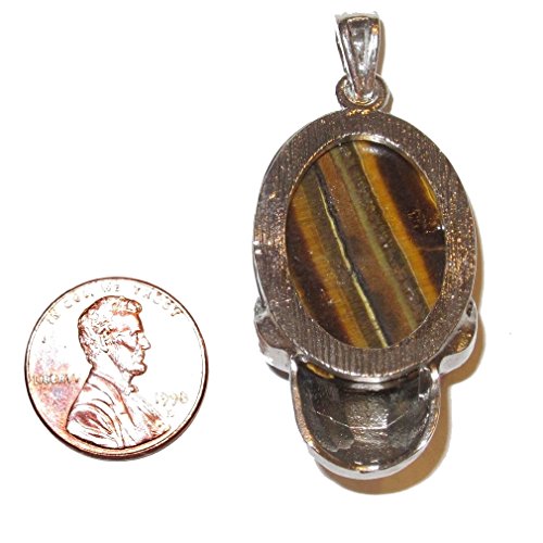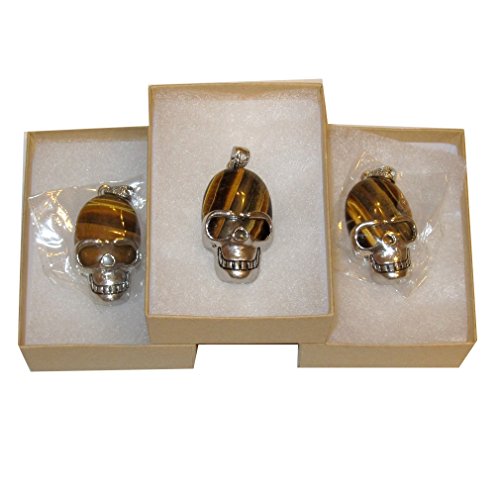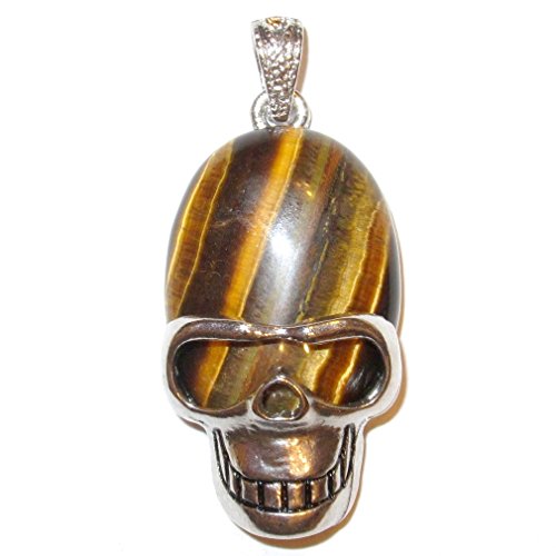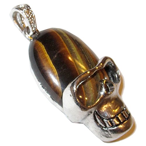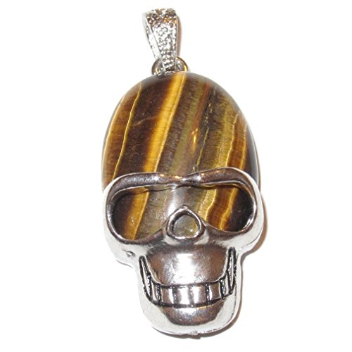 Tigers Eye Pendant 03 Cool Aviator Skull Crystal Courage & Protection Stone 2" (Gift Box)
