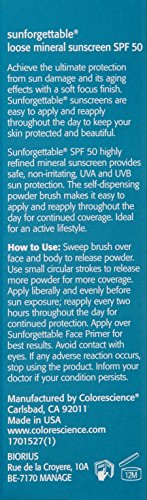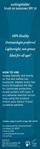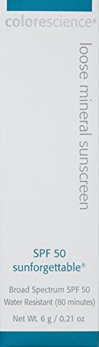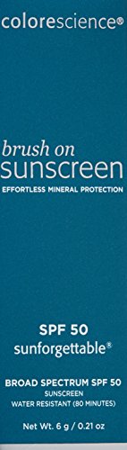 -. Binding : Health and Beauty -. Brand : ColoreScience -. Feature : Easy to apply and re-apply loose mineral formula / Safe, non-irritating, Broad Spectrum UVA/UVB sun protection / Water Resistant (80 Minutes) / Free Sample with any purchase from Colorescience / Made in USA -. Label : Colorescience -. Manufacturer : Colorescience -. MPN : 1162 -. PartNumber : 1162 -. ProductGroup : Prestige Beauty -. ProductTypeName : LUXURY_BEAUTY -. Publisher : Colorescience -. Size : Net Wt. 6 g / 0.21 oz -. Studio : Colorescience -. Title : Colorescience Sunforgettable Mineral SPF 50 Sunscreen Brush